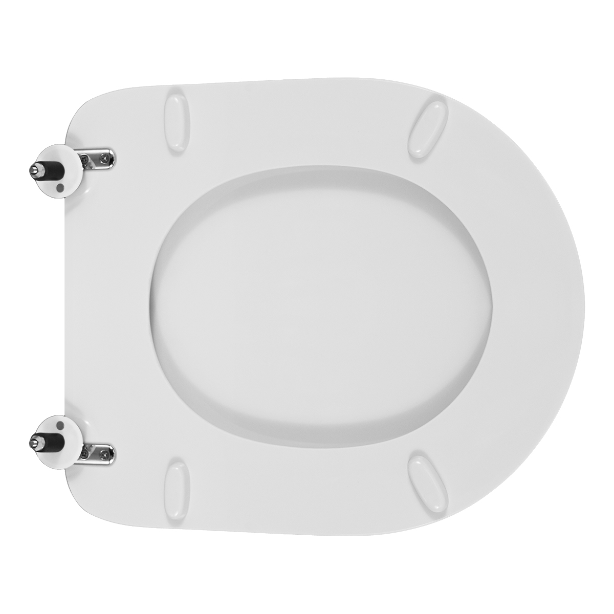 Sedile in legno stabilizzato, colato in poliestere. Cerniere regolabili in ottone cromato e viti di fissaggio in acciaio inox.
