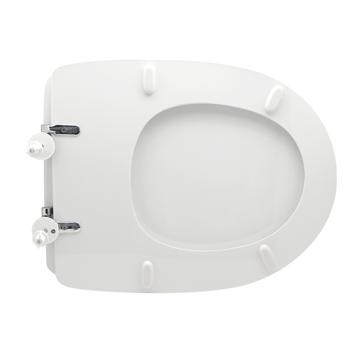 Sedile in legno stabilizzato, colato in poliestere. Cerniere regolabili in ottone cromato e viti di fissaggio in acciaio inox.