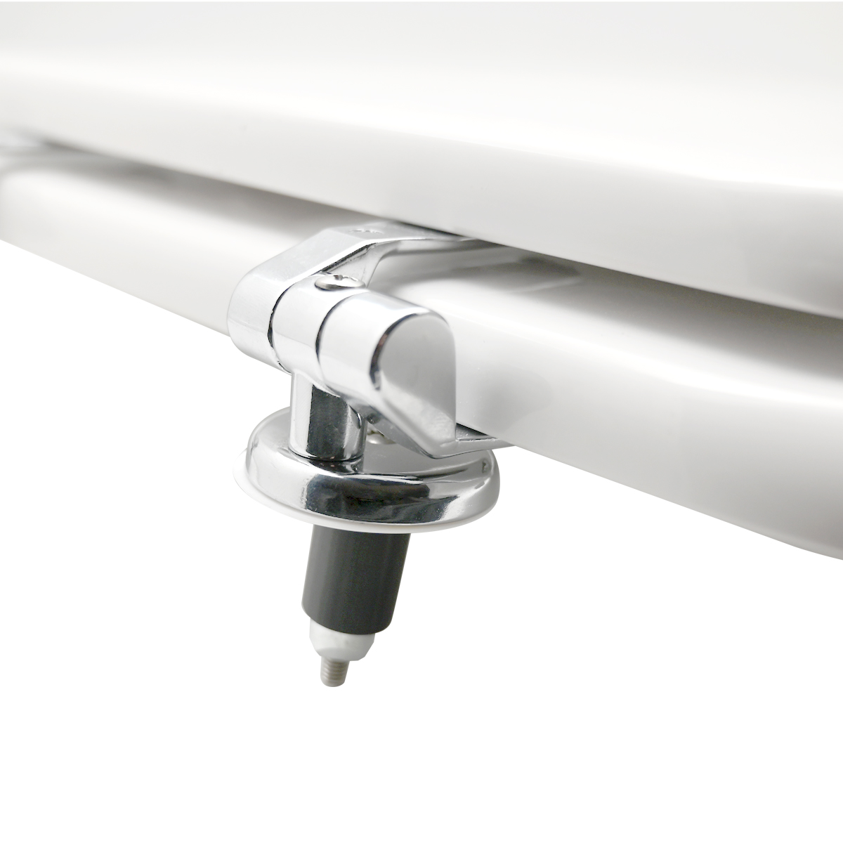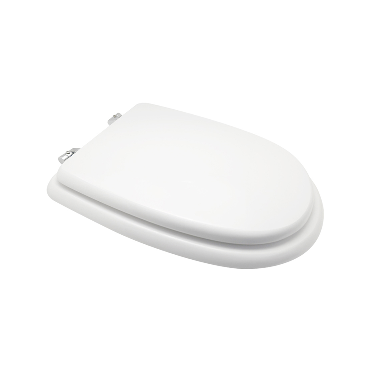 Sedile in legno stabilizzato, colato in poliestere. Cerniere regolabili in ottone cromato e viti di fissaggio in acciaio inox.