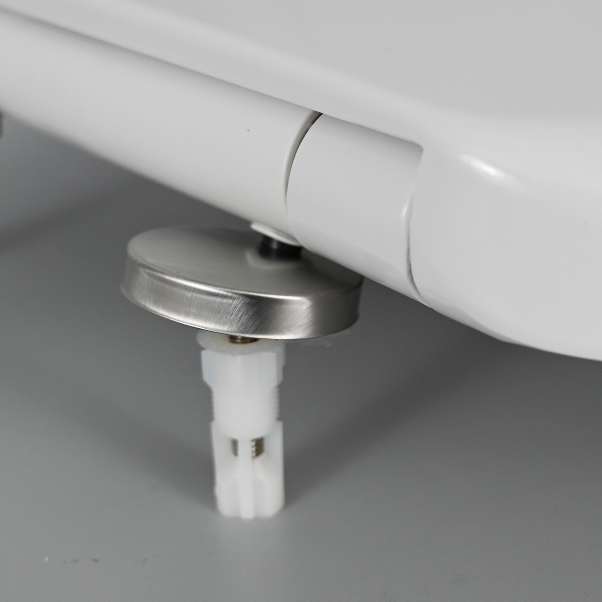 Sedile in termoindurente con chiusura soft close e cerniere a sgancio rapido in acciaio inox.