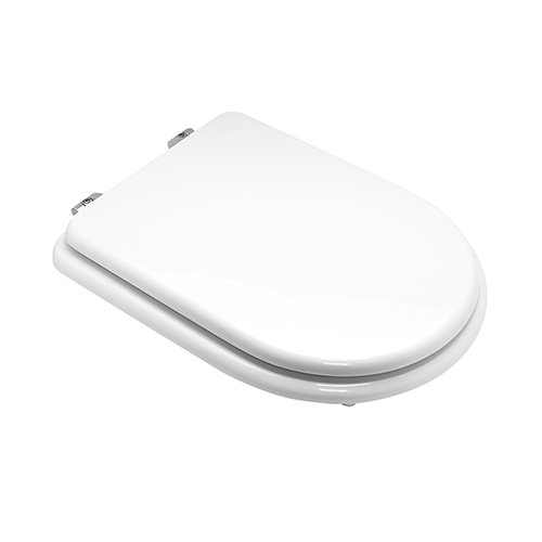 Sedile in legno stabilizzato, colato in poliestere. Cerniere regolabili in ottone cromato e viti di fissaggio in acciaio inox.