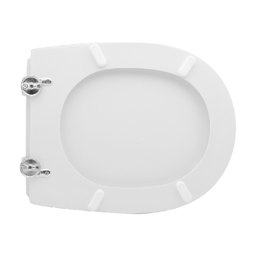 Sedile in legno stabilizzato, colato in poliestere. Cerniere regolabili in ottone cromato e viti di fissaggio in acciaio inox.