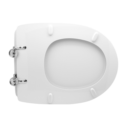 Cerniere regolabili. Sedile in legno stabilizzato, colato in poliestere. Cerniere in ottone cromato e viti di fissaggio in acciaio inox.