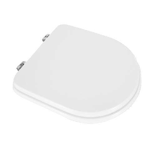 Sedile in legno stabilizzato, colato in poliestere. Cerniere regolabili in ottone cromato e viti di fissaggio in acciaio inox.