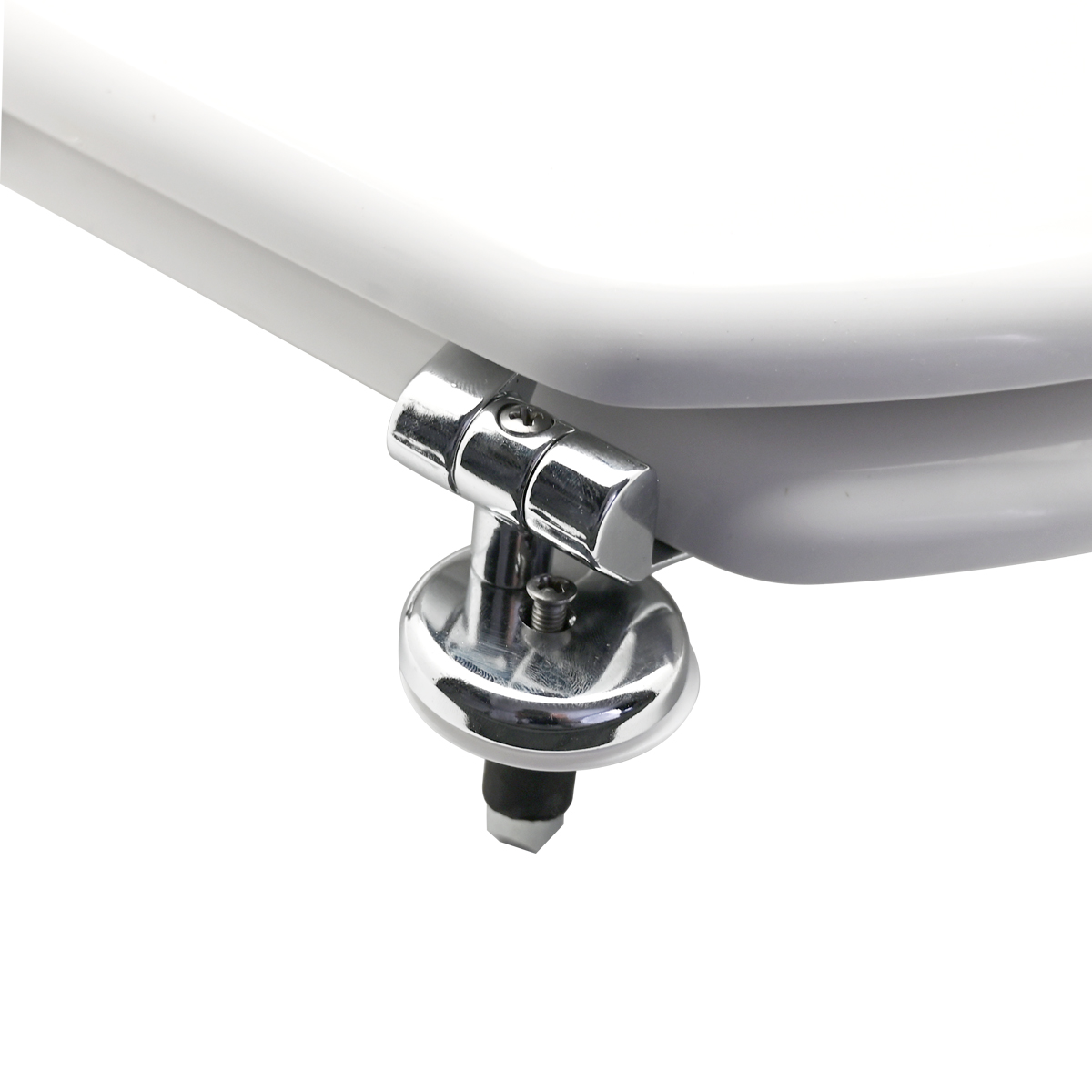 Sedile in legno stabilizzato, colato in poliestere. Cerniere regolabili in ottone cromato e viti di fissaggio in acciaio inox.