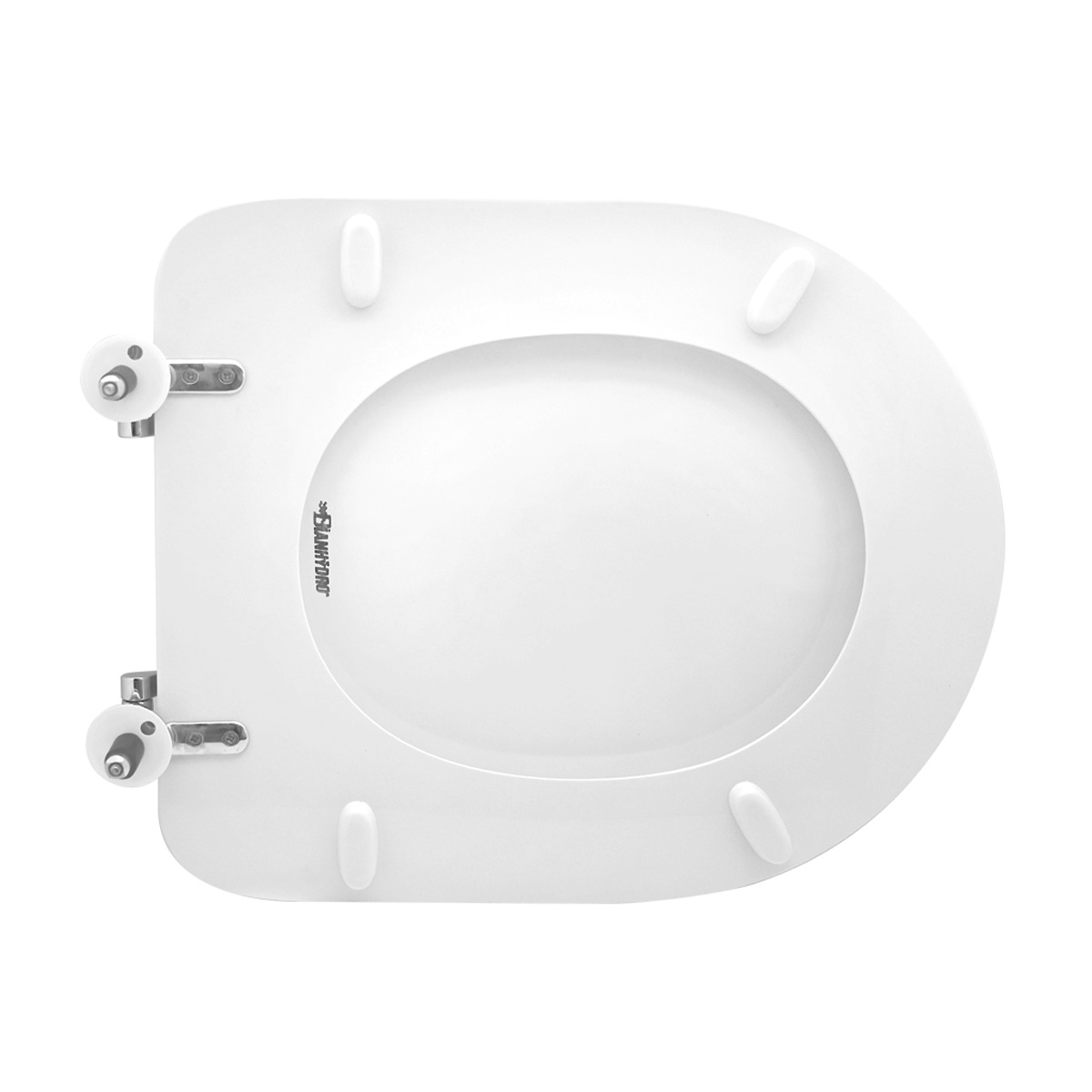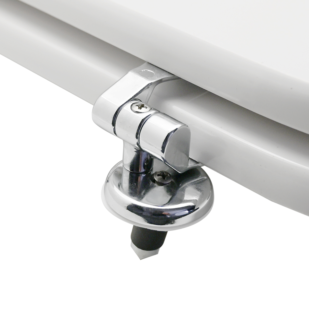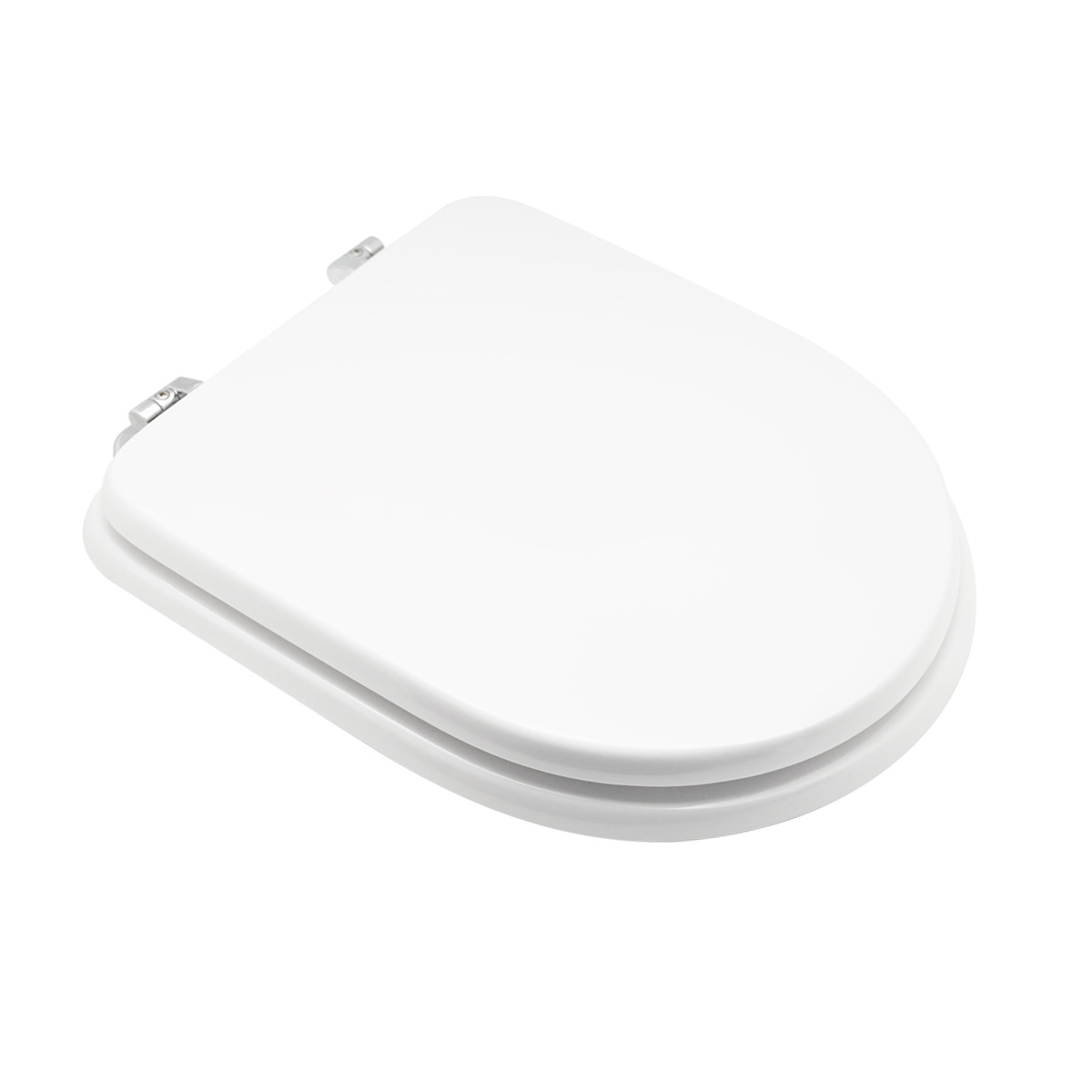 Sedile in legno stabilizzato, colato in poliestere. Cerniere regolabili in ottone cromato e viti di fissaggio in acciaio inox.