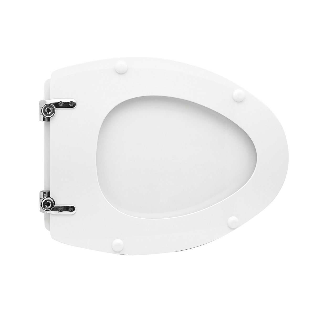 Sedile in legno stabilizzato, colato in poliestere. Cerniere fisse in ottone cromato e viti di fissaggio in acciaio inox.